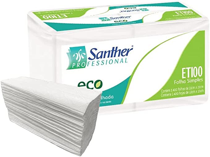 O Papel Int. 3D Eco Santher ETI00 é feito com 100% de celulose virgem. Embalagem: Fardo com 2400 Folhas Simples. Dimensão da Folha: 22 x 23 cm. Cor: Branco.