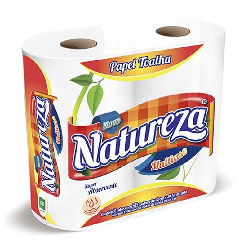 Papel toalha multiuso em rolo. Alta capacidade de absorção de gordura e líquidos em geral. Toalha folha dupla branca. Quantidade: 2 rolos com 50 toalhas cada de 20,5 x 22cm.