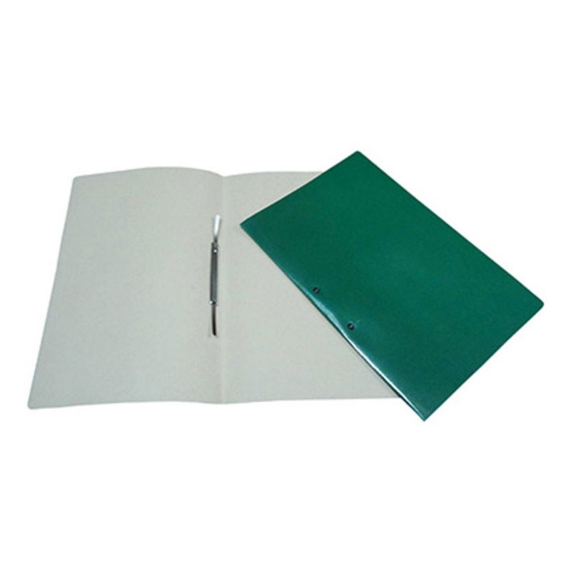 Pasta de papelão plastificada com grampo trilho em metal. Tamanho: Ofício. Cor: Verde. Marca: Jussara.