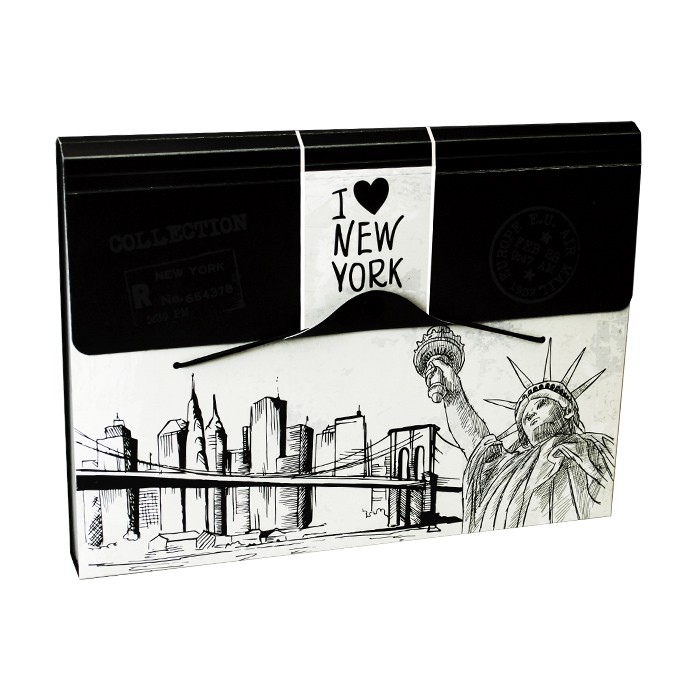 Pasta sanfonada em polipropileno com impressão em offset. Possui visores e acompanha etiquetas para identificação das divisórias. Fechamento com elástico e botão. Peso: 0.320 kg. Dimensões: 331 x 32 x 242 mm. Espessura: 0,90.