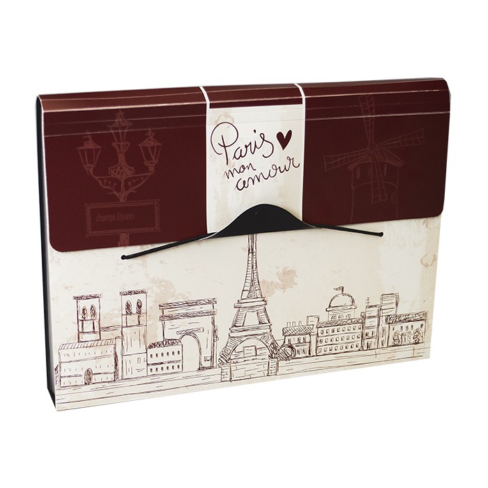 Pasta sanfonada em polipropileno com impressão em offset. Possui visores e acompanha etiquetas para identificação das divisórias. Fechamento com elástico e botão. Peso: 0.320 kg. Dimensões: 331 x 32 x 242 mm. Espessura: 0,90.