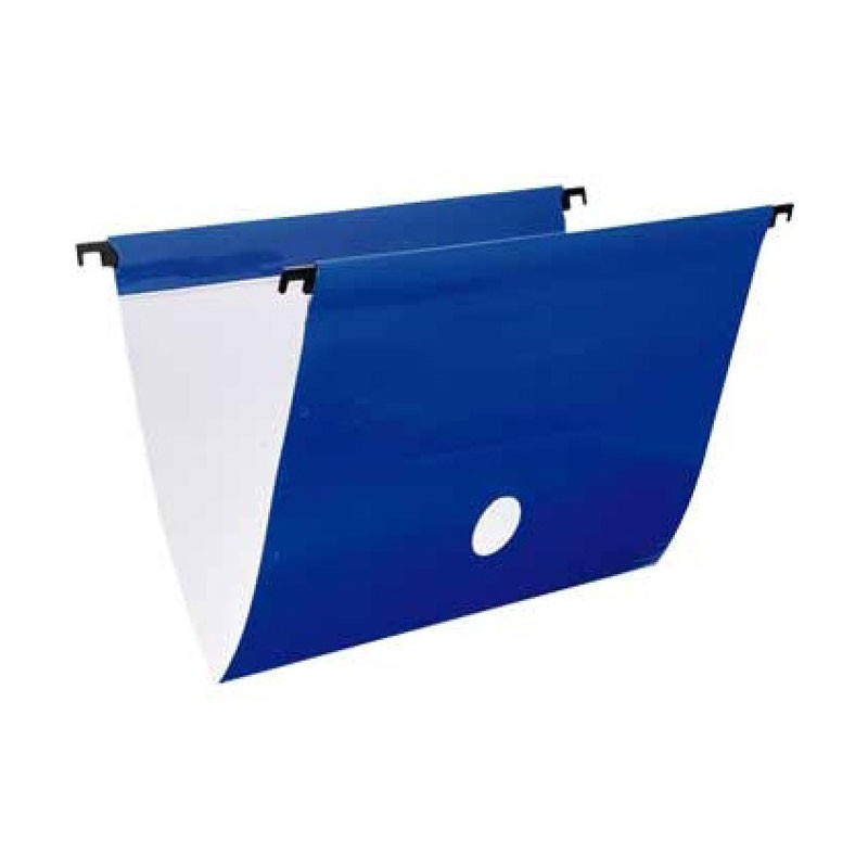 Pasta Suspensa DelloPlus Azul 0099 em cartão altamente resistente plastificado, com haste plástica, siro, etiqueta, e grampo plástico. Com posições para visor e etiqueta. Abas coladas internamente para melhor acabamento do produto.