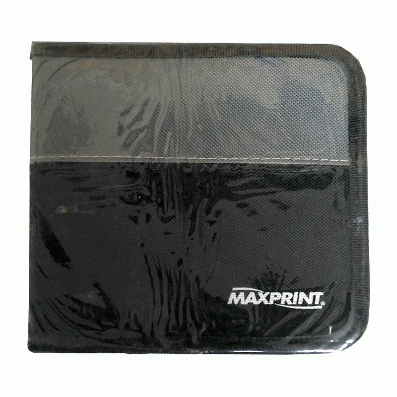 Porta cd/dvd em formato de pasta com 24 lugares. Marca: Maxprint.