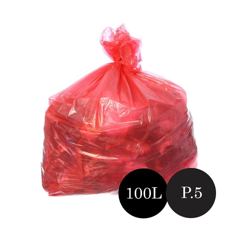 Saco de Lixo Comum Vermelho Reforçado P.5 com capacidade de 100 Litros. material resistente, recomendado para higienização do seu estabelecimento. Pacote com 100 unidades.