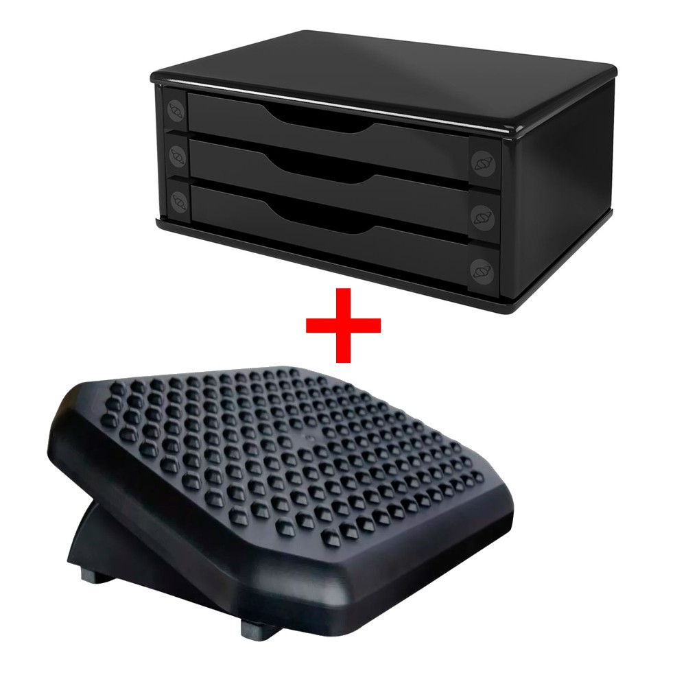 Suporte Monitor Black Piano 3 Gavetas + Apoio Pés