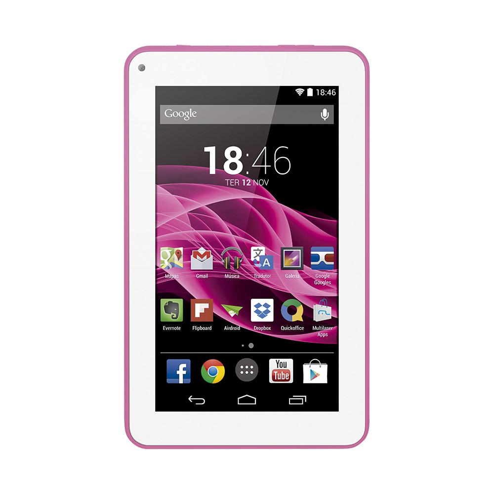 Tablet Multilaser M7S Rosa Quad Core Android 4.4 Kit Kat Dual Câmera Wi-Fi Tela Capacitiva 7" Memória 8GB - NB186