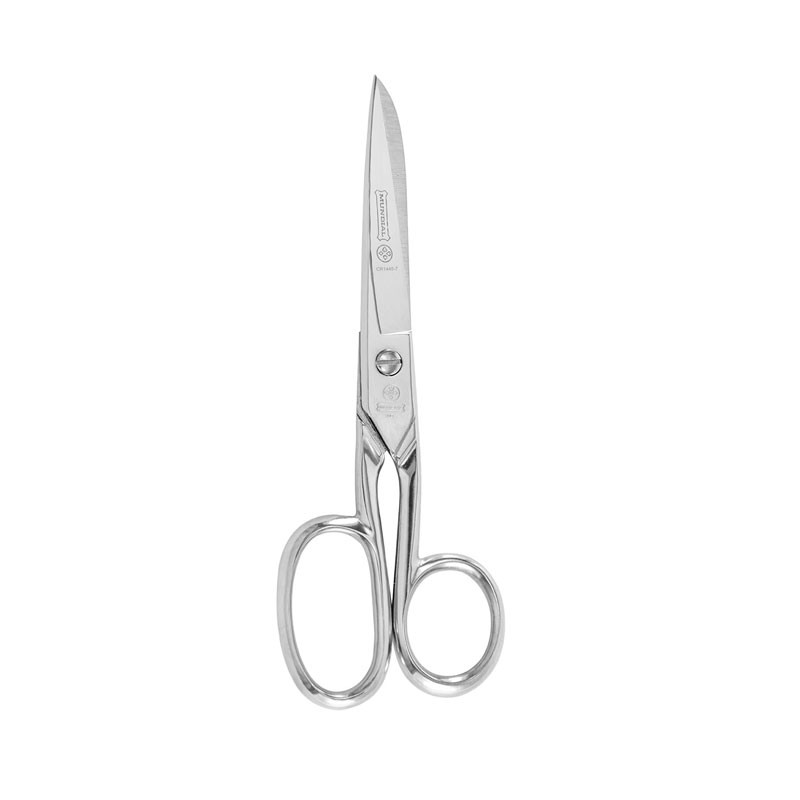 Tesoura de costura industrial, feita em aço inox ¨7¨, ponta reta e cabo pintado cinza. Marca: Mundial. Modelo: 1445/7 - 17,8cm.