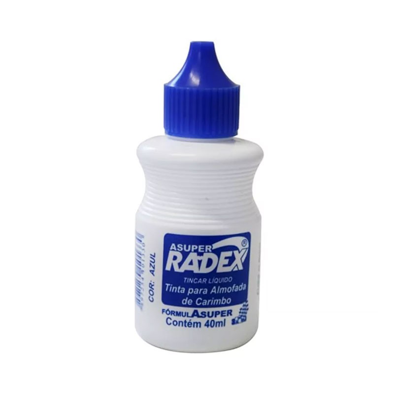 A tinta para almofada de carimbo ASUPER RADEX TINCAR é ideal para reativar todos os tipos de almofadas, bastando algumas gotas.