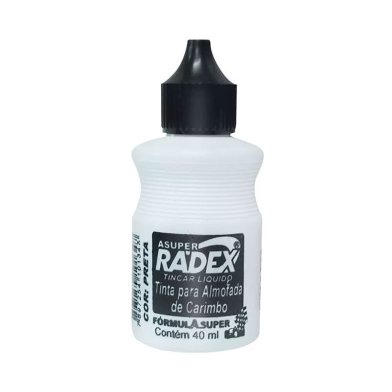A tinta para almofada de carimbo ASUPER RADEX TINCAR é ideal para reativar todos os tipos de almofadas, bastando algumas gotas.