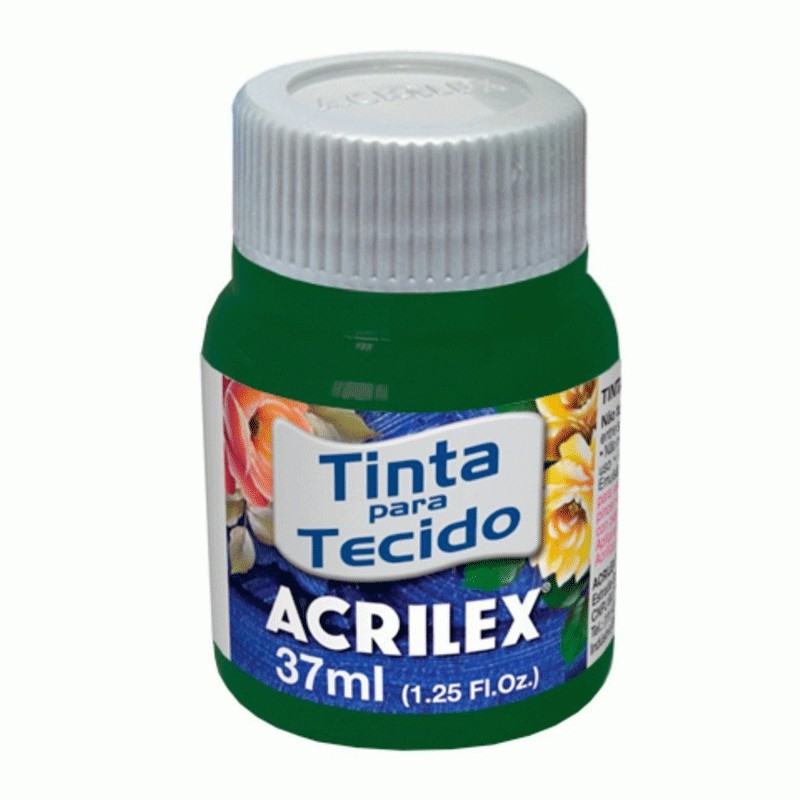 Tinta para Tecido Fosca Acrilex Verde. Super resistência à lavagens. Excelente cobertura. Fixação a frio. Maior rendimento. Cores miscíveis entre si. Pronta para uso.