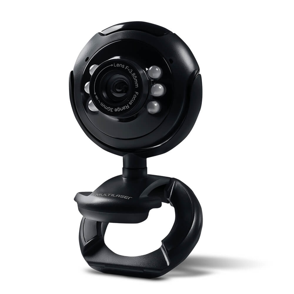 Webcam Multilaser Plug e Play 16Mp Night Vision Microfone USB Preto - WC045
